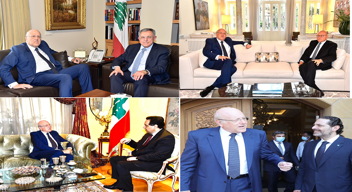 وبدأ رئيس الوزراء المكلف نجيب ميقاتي، مشاورات تشكيل الحكومة الجديدة بزيارات إلى رؤساء الحكومات السابقين.