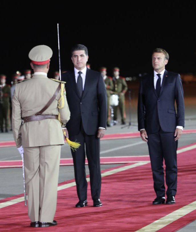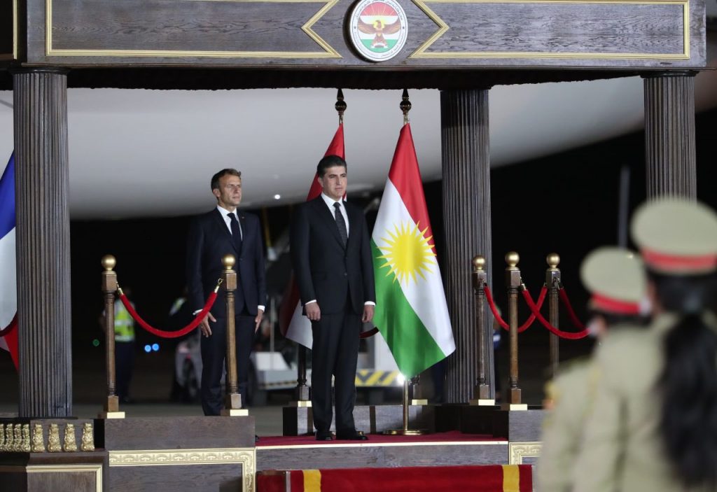 وذكرت مصادر، أن رئيس الإقليم نيجرفان بارزاني استقبل ماكرون فجر اليوم في مطار أربيل الدولي.