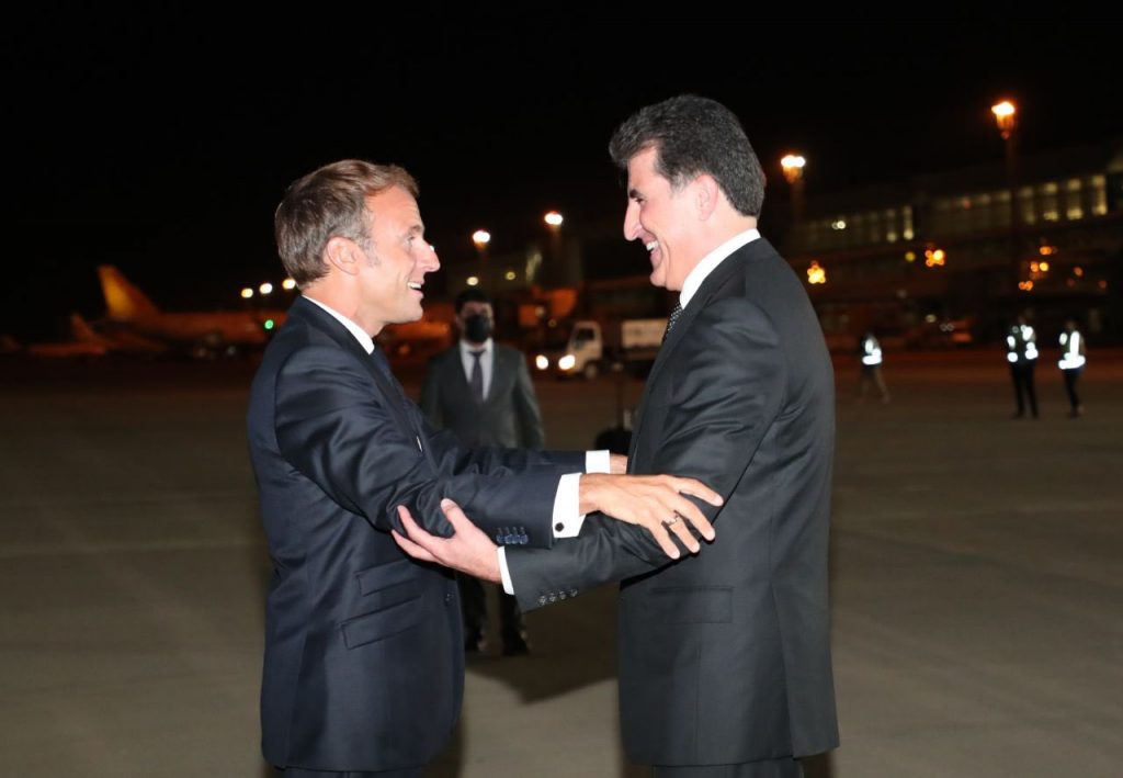وكتب بارزاني على حسابه في تويتر: “يسعدني أن أرحب بصديقي الرئيس الفرنسي إيمانويل ماكرون في أربيل. إنني أتطلع إلى مناقشة العلاقات الثنائية والانتخابات العراقية وغيرها من القضايا الملحة مع الرئيس ماكرون. ولا زلت ممتنا لدعم فرنسا المستمر لإقليم كوردستان والعراق”.