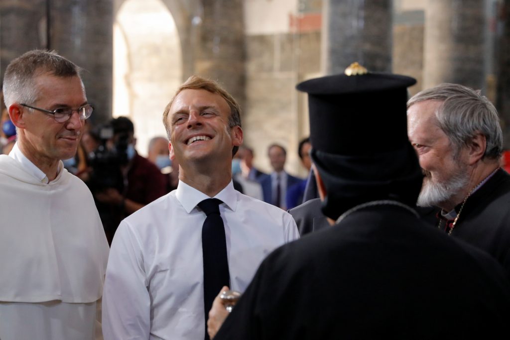 قال ماكرون الذي زار ليل الجمعة مرقد الإمام الكاظم في العاصمة بغداد “أمس كنت في مرقد شيعي، وسأرى الإيزيديين أيضا… أعتقد أن المشاكل التي يواجهها العراقيون لا حل لها إلا بالعمل معا”.