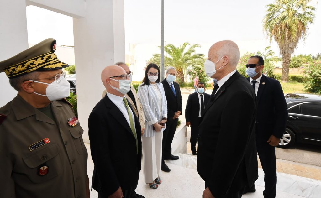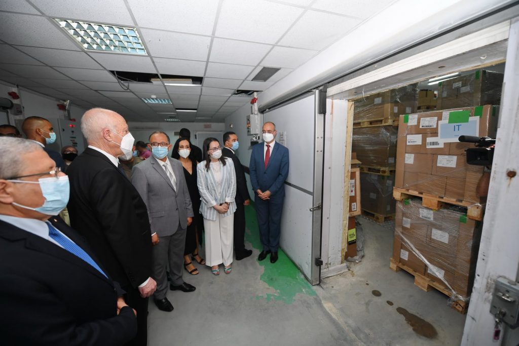 أشرف قيس سعيد رئيس تونس، اليوم الأحد، على عملية تسلم مليون و500 ألف جرعة من التلقيح ضد فيروس كورونا الشحنة التي وصلت من إيطاليا، وذلك بحضور لورانزو فانارا، سفير إيطاليا بتونس.
