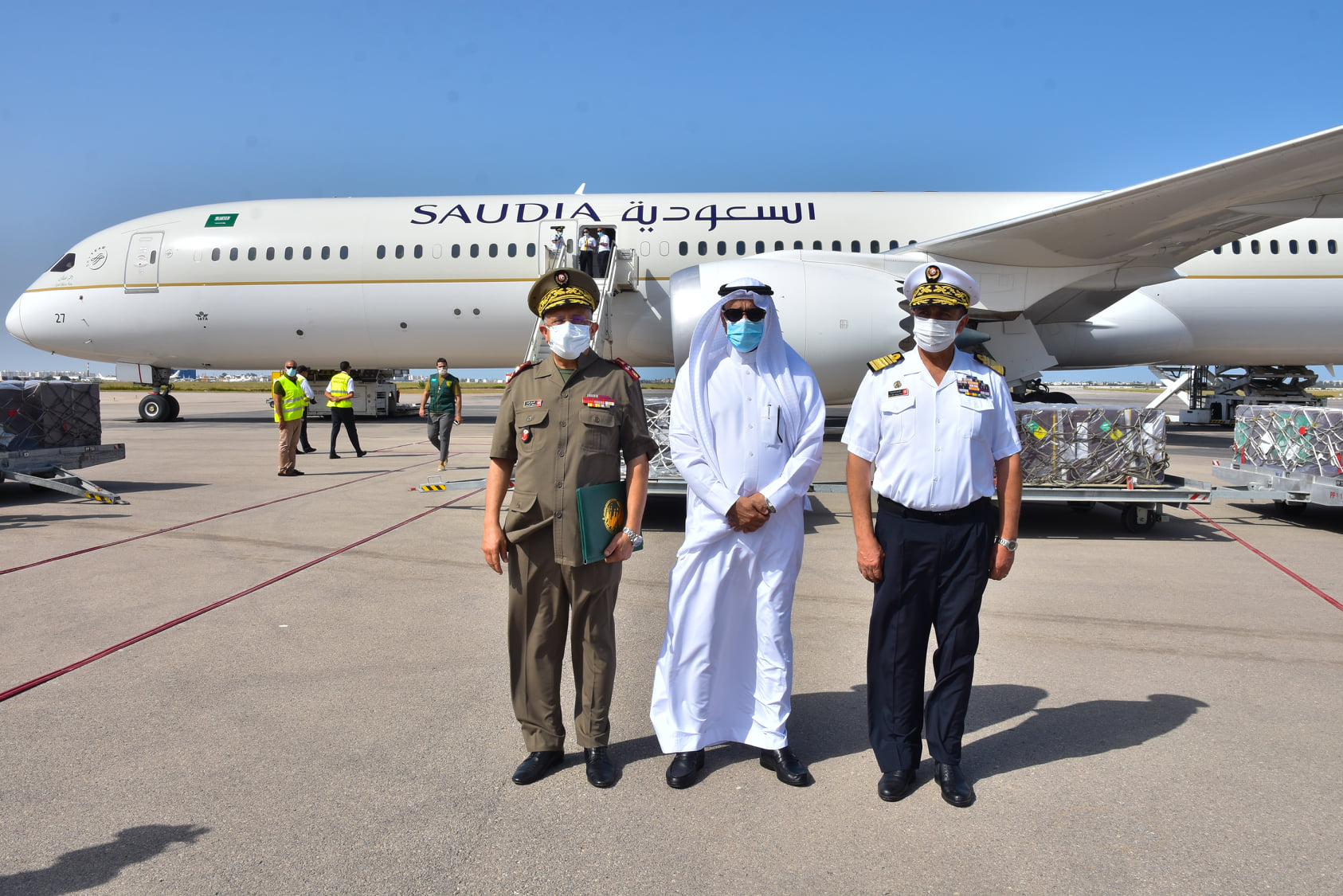 وتم تسلّم هذه المعدات ومكثّفات الأكسجين بحضور الفريق بالبحرية عبد الرؤوف عطاء الله، المستشار أول لدى رئيس جمهورية تونس المكلف بالأمن القومي، والفريق طبيب مصطفى الفرجاني، المدير العام للصحة العسكرية، وسعادة الدكتور عبد العزيز بن علي الصقر، سفير المملكة العربية السعودية بتونس.